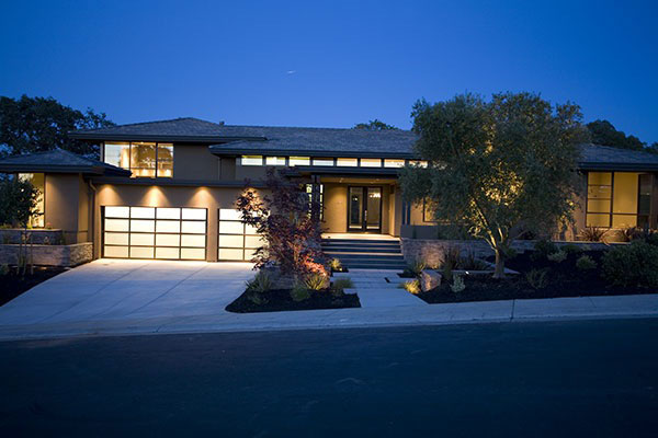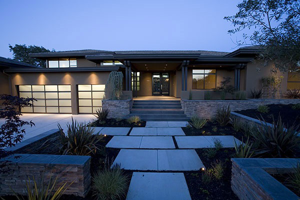 Simple, graceful forms with the merest suggestion of Prairie Style characterize this contemporary home which demonstrates that a design using elegant materials needn’t carry an extravagant price tag. This 5,400 square foot project was completed in 5 months at a cost around $200 a square foot.
