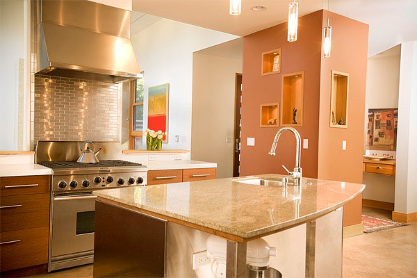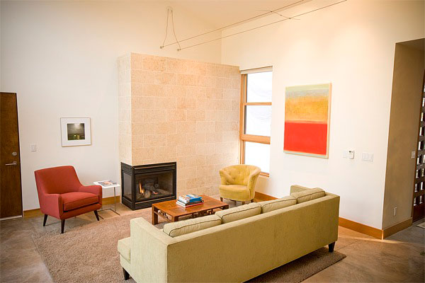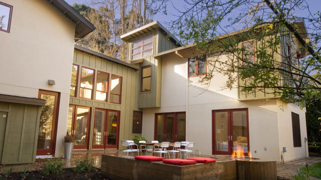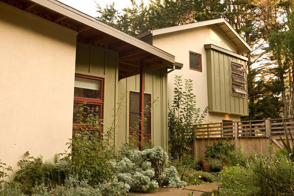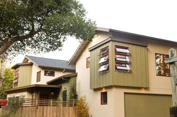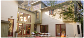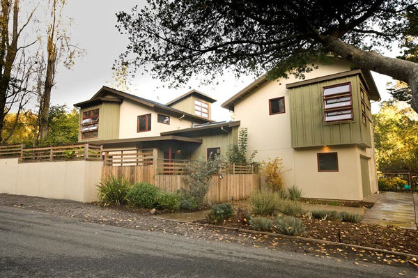 The Mill Valley House is located in a small community near Mill Valley, CA, and this firm’s principal got the full experience of an owner-builder. Not only was he project architect and contractor, but developer as well. The site required a complicated lot split to create a new parcel at the front of a half acre lot that had an existing home at the rear. Design emphasized a budget-conscious contemporary look with a decided green influence, including lots of windows carefully oriented to reduce lighting requirements throughout the day, radiant floors, which eliminated HVAC in a mild climate, reduced fluorescent lighting and bamboo floors. The contemporary look serves a dual purpose. While the house hints at a familiar farm house vocabulary, with gable roofs and board and batten siding, it also incorporates contemporary features such as awning windows and a flowing floor plan. It’s unique look and reduced detailing, thereby eliminating typically expensive finish work such as crown molding or wainscoting.